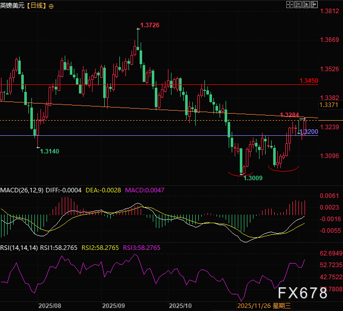 周二,美国总统特朗普在白宫活动中回应提问时表示,已将美联储主席继任者人选缩减至一人,将于2026年初公布,并暗示此人正是哈塞特。鉴于哈塞特多次公开表态支持降息,若其最终当选,将对美元构成明确利空,叠加当前市场对美联储宽松政策的预期,进一步加剧了美元的抛售压力,为英镑兑美元汇率走高创造了有利条件。