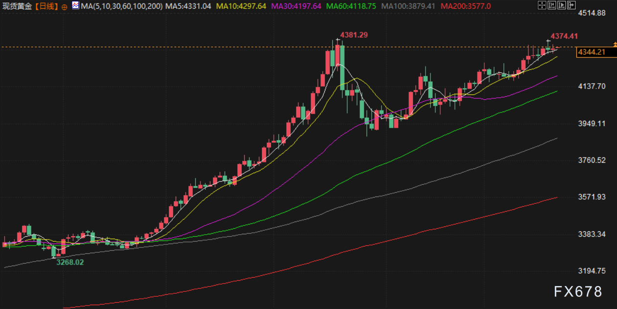 与此同时,现货黄金上涨0.4%,至每盎司4347.07美元,上周录得1.1%的涨幅。市场对美联储2026年降息的预期持续升温,为金价提供支撑。