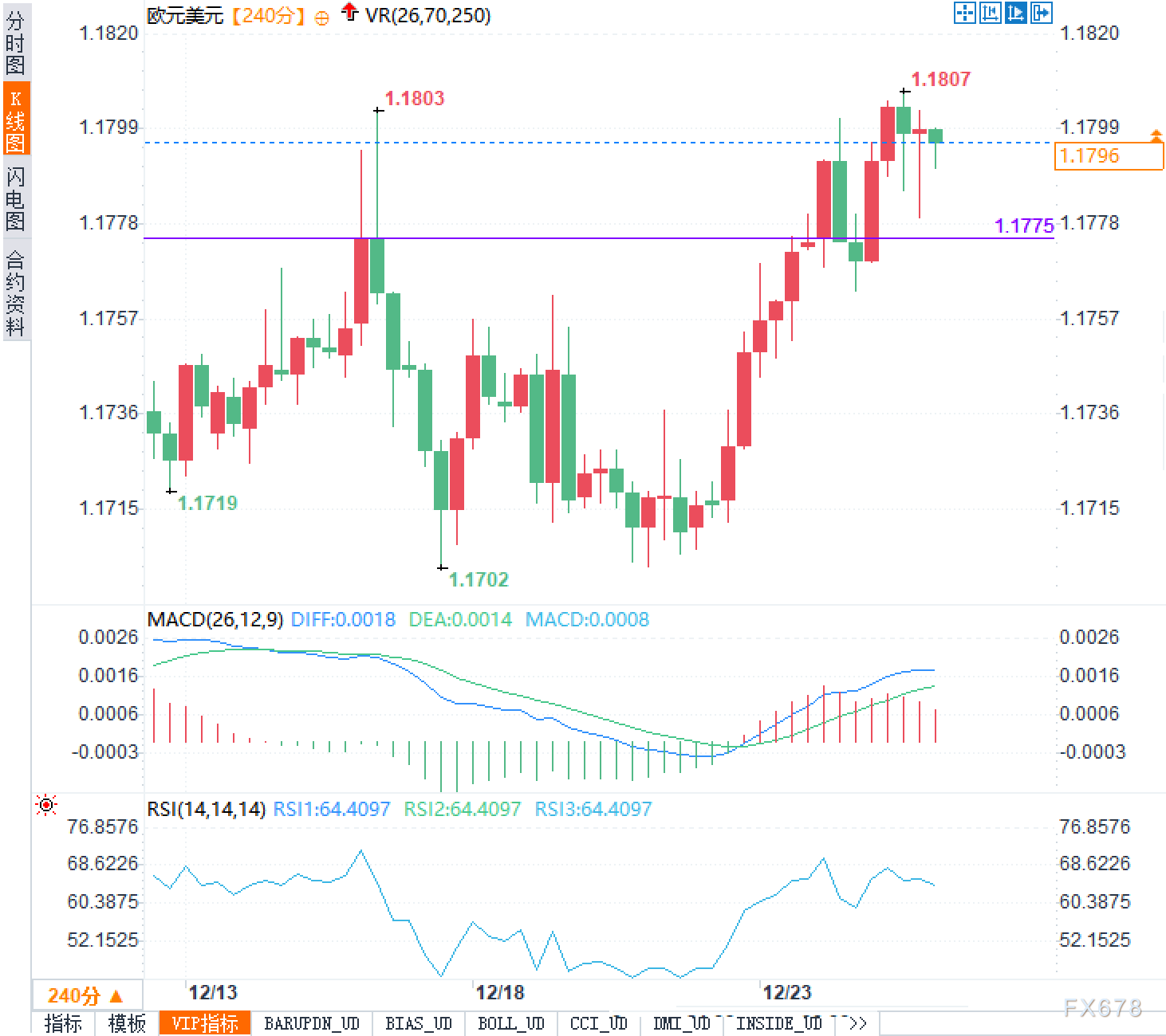 汇通财经APP讯——周三(12月24日)欧洲时段,欧元兑美元在1.1800附近运行,早些时候触及1.1807的高位。